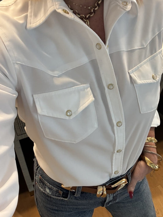 You requested, we listened! Meet the Bare Blouse Collection... A long sleeve pearl snap that keeps it simple, sleek, and effortlessly stunning. No embroidery, just a blank canvas ready to style your way. Dress it up, dress it down, or let the minimalism speak for itself.